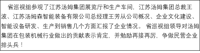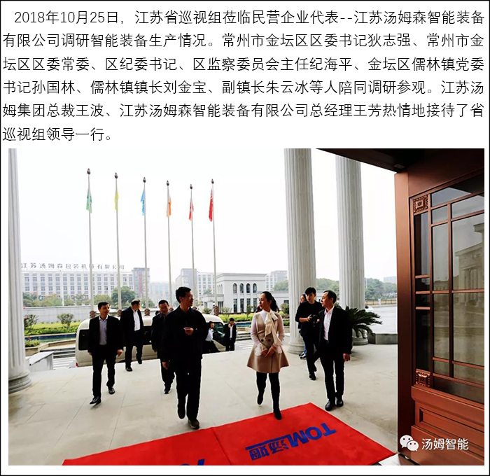 江蘇省巡視組蒞臨民營企業代表--江蘇湯姆集團調研參觀!