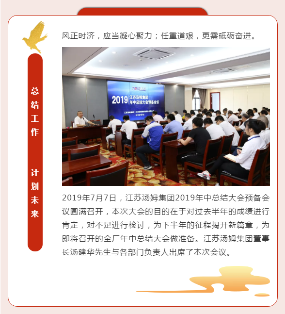 江蘇湯姆集團2019年中總結(jié)大會預備會議圓滿召開丨不忘初心,砥礪前行