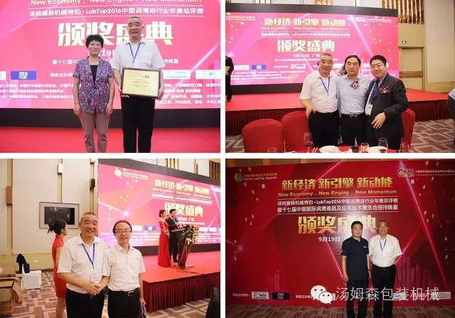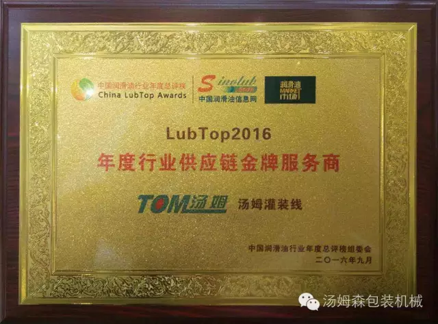 2016年9月19日,在花城廣州舉辦的“LubTop2016中國潤滑油行業(yè)年度總評榜”頒獎盛典上,江蘇湯姆集團(tuán)的設(shè)備贏得了社會公眾和專家評委的廣泛認(rèn)可,終榮獲“ LubTop2016年度行業(yè)供應(yīng)鏈金牌服務(wù)商”和“LubTop2016 年度具工匠精神獎”兩項(xiàng)殊榮,湯姆集團(tuán)董事長湯建華出席了頒獎盛典。這是整個潤滑油行業(yè)對湯姆集團(tuán)的高度認(rèn)可。