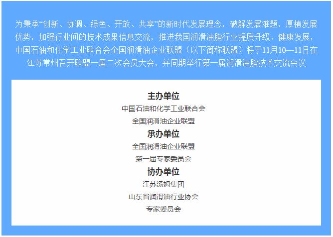 會議邀請丨江蘇湯姆集團協辦全國潤滑油企業聯盟一屆二次會員大會暨 第一屆潤滑油脂技術交流會