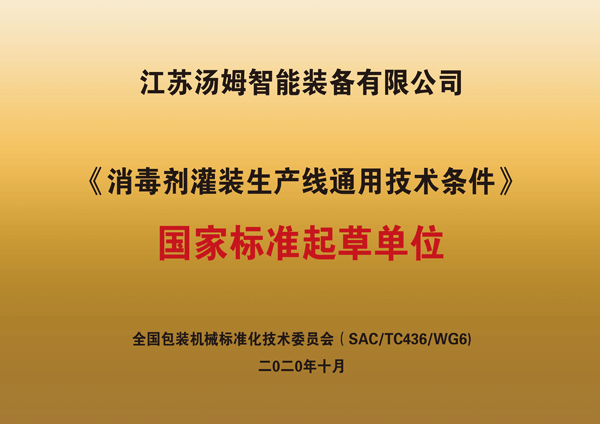 消毒劑灌裝設(shè)備標(biāo)準(zhǔn)工作組