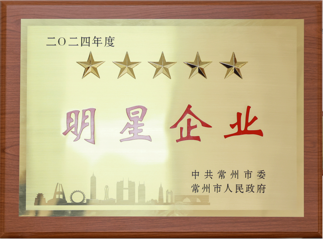 2024年榮獲常州市五星級(jí)明星企業(yè)榮譽(yù)證書(shū)
