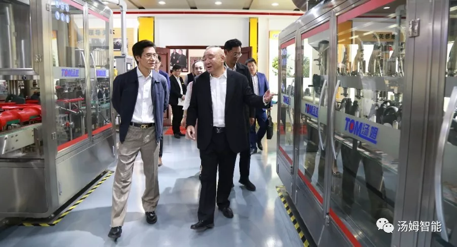 11月7日早上,常州市工信局局長朱志洪,秘書長李皓,常州市武進區副區長徐治國等領導一行光臨江蘇湯姆智能裝備有限公司參觀指導。 江蘇湯姆集團董事長湯建華攜集團總裁張正寶,湯姆森總經理王芳熱情地接待了各位領導,并代表湯姆集團720名員工對朱局長一行的到來表示歡迎。 市局領導在董事長湯建華、總裁張正寶、湯姆森總經理王芳的帶領下,參觀了湯姆集團的展廳,對展示的每一條灌裝線進行詳細了解,并給予贊賞。 朱志洪局長是專家級領導,在了解了江蘇湯姆集團現狀后,首先對企業的技術創新給予了充分肯定,而后,又以非常專業的眼光指出不僅要做出創新和高科技的產品,更要求湯姆要努力成為智能裝備領域系統解決方案的供應商,要把目光投向高端的消費行業,如精細化工、醫藥、食品等。董事長湯建華在聽取朱志洪局長的建議后,表示認同和感謝。