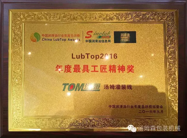 發布日期: 2016-09-29 分類: 湯姆動態 閱讀次數: 3069【喜訊】特約冠名單位江蘇湯姆集團榮膺 LubTop2016年度行業供應鏈金牌服務商和LubTop2016 年度具工匠精神獎