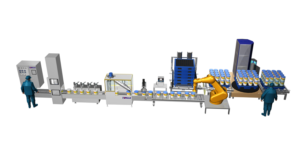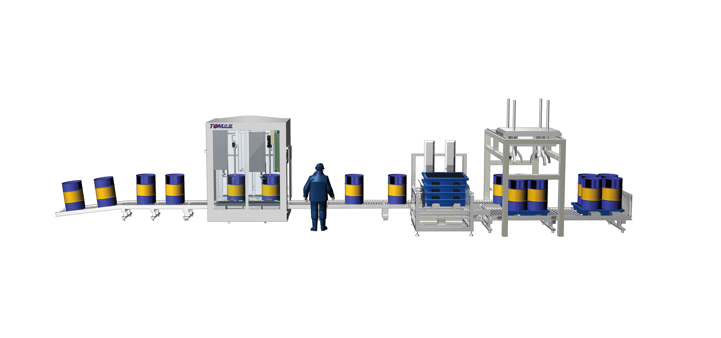 10kg—50kg稱重灌裝、旋蓋、貼標、封口工作流水線